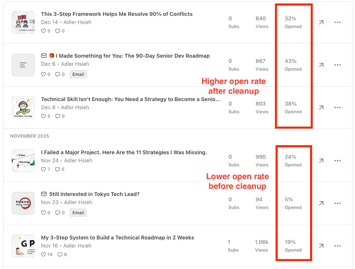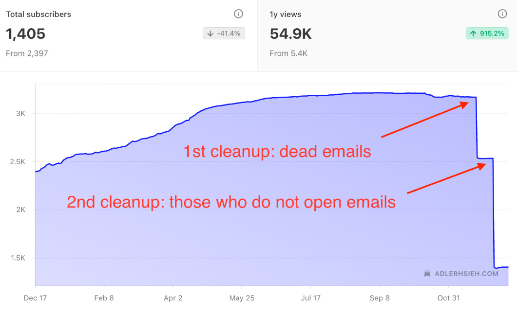 Inspired by Marcos F. Lobo 🗻🧭 in his cleanup, I took action to clean up my subscriber list.