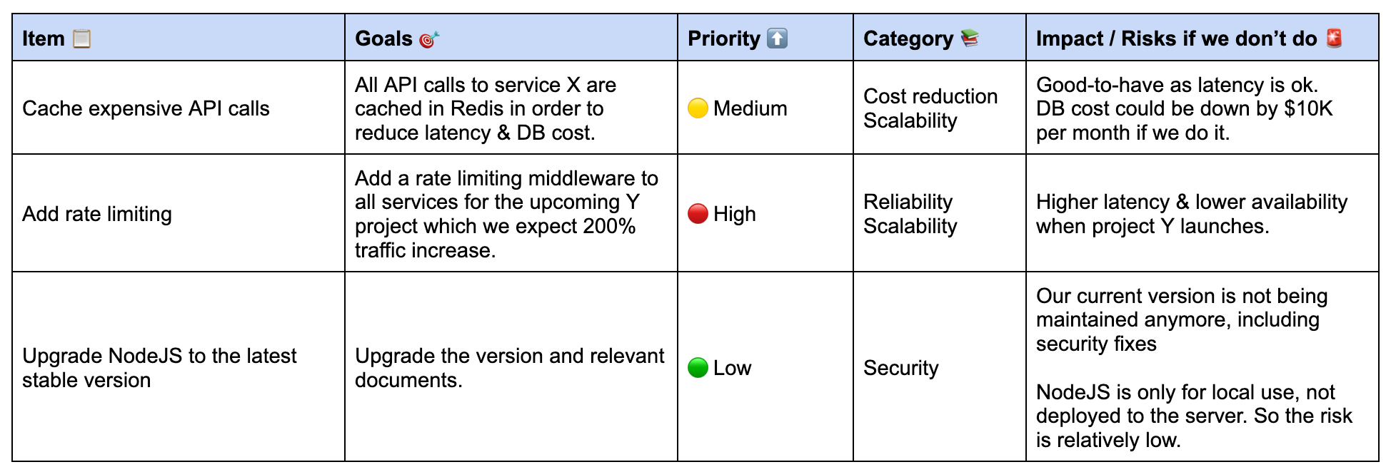 Impact: What benefits does it bring to the team, or what if we don’t do it.