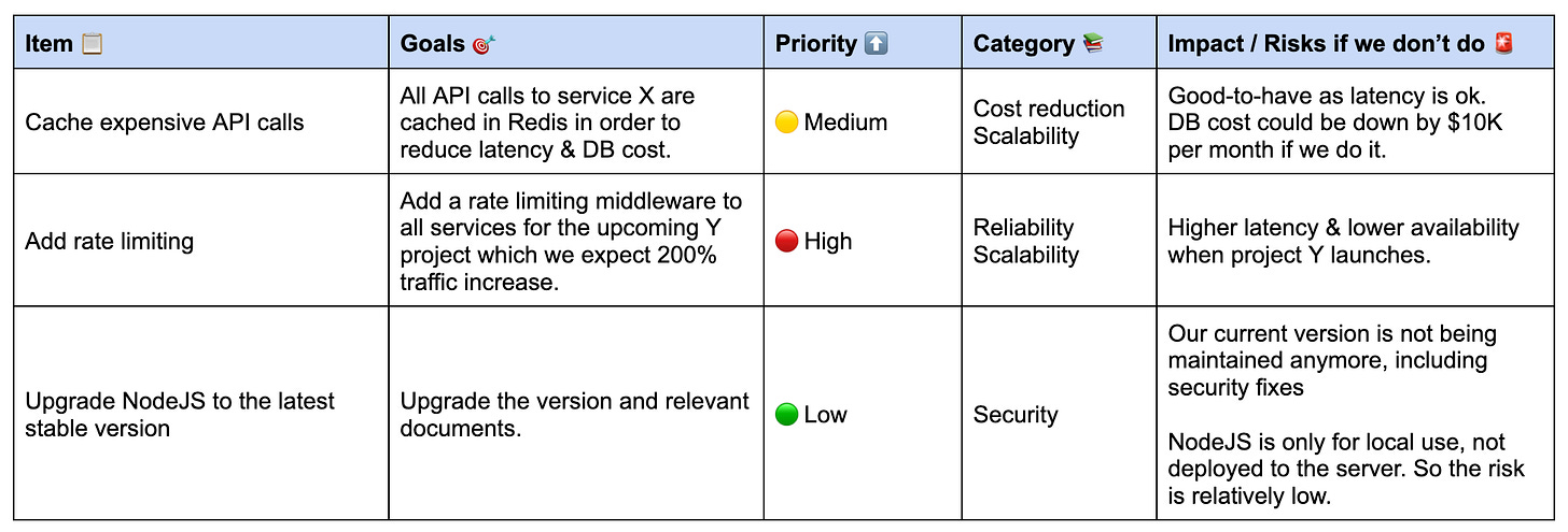 If your team already has a technical roadmap, use the system in this post and analyze whether the roadmap includes all the important details.